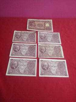 6 Banknotes 5 Lire&1 100 Lire Italia$55Los Angeles, CA