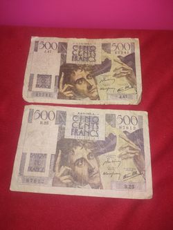 2 Banknotes France 500 Frans 1945 $65Los Angeles, CA