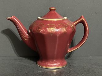 Hall Albany Tea Pot 0233 USA Burgundy With Gold Trim Glazed Ceramic 6 Cup (loc P-14-1)$50Lake Worth, FL