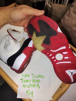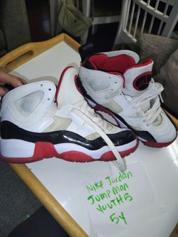 Jordan Jumpman Two Trey older kids' shoe in a white, black, and Gym Red "Bred Concord" Youth 5$30Montclair, CA