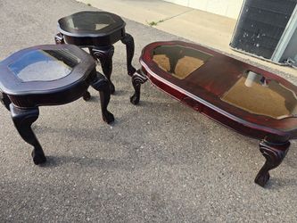 Vintage Cherry Wood Coffee Table Set – Coffee Table + 2 End Tables (Glass Inset Tops)$175Chandler, AZ