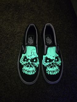 Vans Skull Shoes Black White Glow in the Dark Skull Slip On Men's 5/Women's 6.5$40Las Vegas, NV