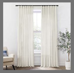 108 Inch Linen Curtains 2 Panels,With Heading Tape Hooks For Track System Back Tab,Stone Washed Cotton Flax Weave Sheer Extra Long Curtain For Living $27Mesa, AZ