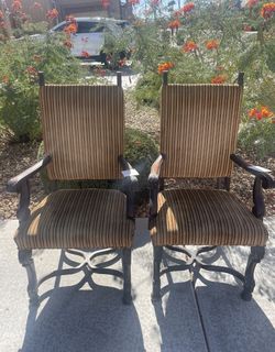 2 Two Hand Carved Wood Tuscan Gothic Castle Gorgeous Striped Gold Rust Blood Red Vintage Chairs$40Las Vegas, NV