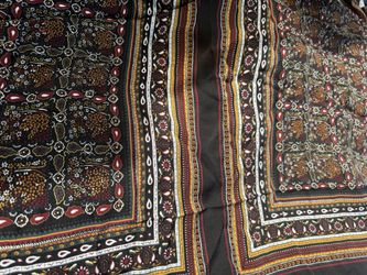 Dead stock silk fabric paisley black brown pink 4 yards X 50” excellent cond.$40San Diego, CA