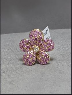 Modern pave puff DIAMOND PINK SAPPHIRE 14K yellow gold flower ring$950Freehold, NJ