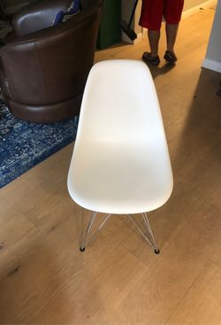 Nice white, plastic scoop chair with chrome pin legs.$20San Juan Capistrano, CA