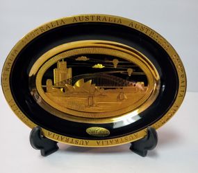Vintage Australia Sydney Opera House Plate with Stand Holder, Lustered and Gold Plated, 5''$15El Paso, TX