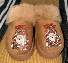 WOMENS Christmas Chestnut Bedazzled Designed Size 8/9 Thick Sole Fluffy Slippers $14Polo, IL