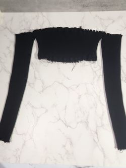 Forever 21 Black Ribbed Off-Shoulder Crop Top (Size Small)