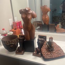 Pareja de caprichosos maceteros de terracota Head Face's art, años 60 México$200Germantown, MD