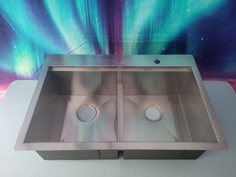 Zero Radius 33 in. Drop-In 50/50 Double Bowl Workstation Kitchen Sink with Spring Neck Faucet$249Sacramento, CA
