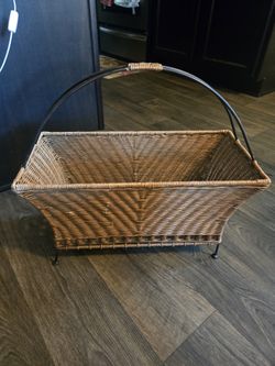 Vintage MCM Scandanavian Rattan Wicker Wrought Iron Magazine Rack$15Kyle, TX