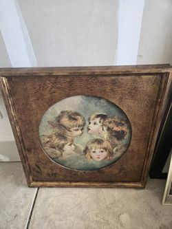 Reproduction Heads Of Angel's 1906 Painting On Circular Wood Frame $35Mustang Ridge, TX