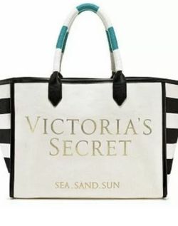 Victoria’s Secret Canvas Tote Weekender Gym Beach Black And White Rope Handle$25Orlando, FL