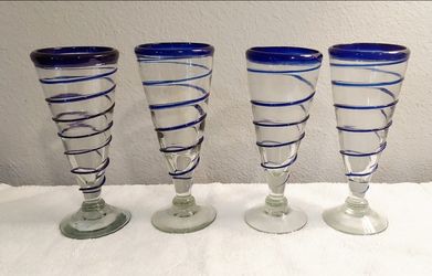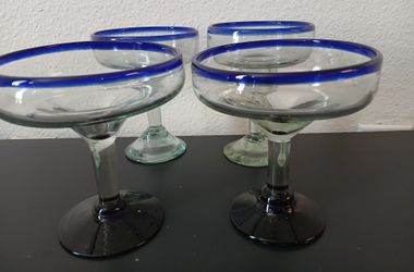 MEXICAN HANDBLOWN MARGARITA GLASSES 2 SETS OF 2