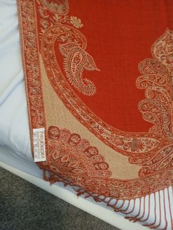 Vintage Pashmina (80% Pashmina 20%Silk) Shawl Wrap Scarf Red with Gold Tones Like New