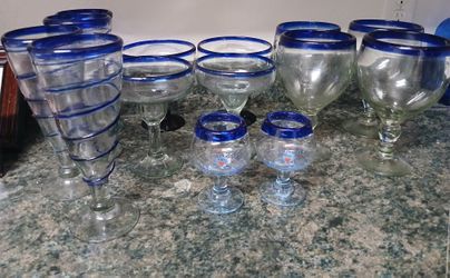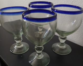 COBALT RIM HANDBLOWN MEXICAN GLASSES