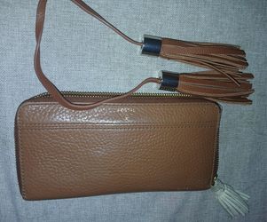 FOSSIL Zip Around Tassel Pull 8"x4" Brown Pebbled Leather Clutch Wallet Like New $5 Pick up Mckinney$5Mckinney, TX