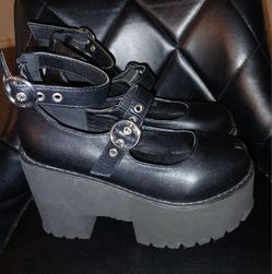 Gothic Chunky Pumps With Buckle Strap Worn Once Like New (Size 5)$4