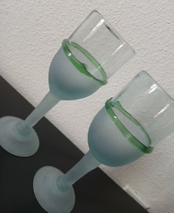 MEXICAN ARTSY HANDBLOWN WINE GLASSES SET OF 2
