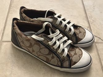 Coach Barrett Sneakers Brown Khaki Signature Logo Jacquard Shoes Size 7.5$25Lake Elsinore, CA