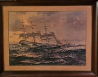 CHARLES ROBERT PATTERSON VERY OLD LITHOGRAPH PRINT FURLING THE FORESAIL NAUTICAL 35X44 " FRAMED $180Pembroke Pines, FL