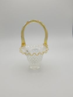 Vintage Fenton Opalescent Hobnail Mini Basket With Gold Trim Has Sticker And Embossed On Bottom$35Puyallup, WA