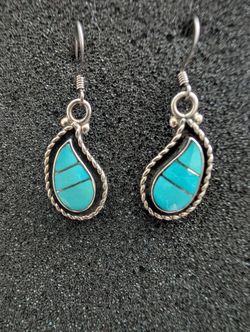 Z Dion Lowsayte Sleeping Beauty Turquoise Channel Inlay Curved Teardrops$150Cincinnati, OH