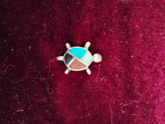 Navajo Sterling Silver Turtle Brooch Inlaid with Turquoise, Red Coral, Onyx+$39Groesbeck, OH