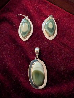 One Of A Kind Roz Menton Green Agate Earring And Pendent Set$225Cincinnati, OH