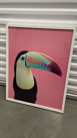 Toucan Bird In Pink, Cute Artwork, High Gloss in White Glass Frame $40Los Angeles, CA