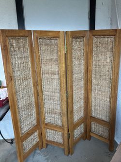 4 Panel Room Divider With Finish In Solid Natural Wood And Rattan $80Ontario, CA