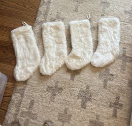 Set Of 4 CB2 Crate Barrel White Snow Faux Fur Christmas Stockings $50Portland, OR