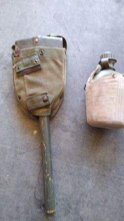 Vintage army gear shovel and water canteen$50Surprise, AZ