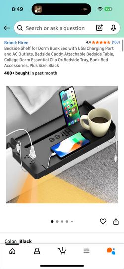 Bedside Shelf for Dorm Bunk Bed with USB Charging Port and AC Outlets, Bedside Caddy, Attachable Bedside Table, College Dorm Essential Clip On Bedside$30San Diego, CA