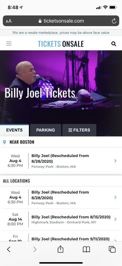 Billy joel tickets @ Fenway Park$315Reading, MA