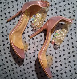 Akira pink embellished high heels with clear straps and rhinestone details size 8 $15Chicago, IL