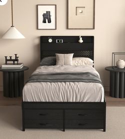 Twin Bed Frame with Storage Drawers + Headboard (Black) — $150 OBO$150Miami, FL