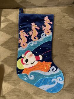 Christmas Stocking Tropical Beachy Coastal Seahorse & Santa Stocking $10Town 'n' Country, FL