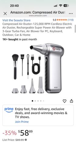 Compressed Air Duster-125,000 RPM Cordless Electric Air Duster, Rechargeable Super Power Air Blower with 3-Gear Turbo Fan, Air Blower for PC, Keyboard$25Arcadia, CA