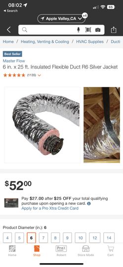 6” Insulated Ducted R6 Silver Jacket$40Victorville, CA