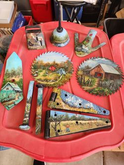 Hand Painted Saw Blades, Oil Can, Railroad Spikes, Garden Tools, Bell$50Sun City, AZ