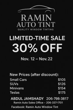WINDOW TINT SALE ALERT$105Tacoma, WA