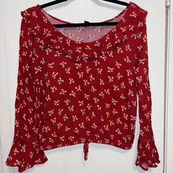 SoldAmerican Eagle Red Floral Ruffle Blouse $10San Antonio, TX