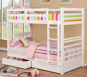 Brand New White Twin Size Bunk Bed w Trundle Drawers $579South Pasadena, CA