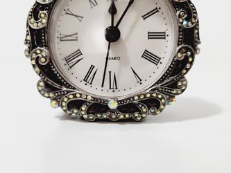 Quartz Square 3.5” Clock Jeweled Pearl Colored Metal DM-6002