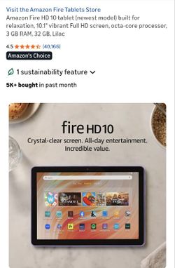 Amazon Fire HD 10 tablet (newest model) built for relaxation, 10.1" vibrant Full HD screen, octa-core processor, 3$115Laguna Beach, CA
