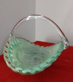 Murano Hand-blown Green Glass Basket,made in Italy with Original Label.$50Miami, FL