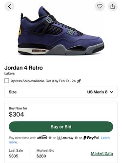 Jordan Retro 4 Lakers$300Montclair, CA